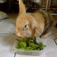 Zanim złamane żabki odrosną trzeba ułatwić królikowi pobieranie pokarmu.